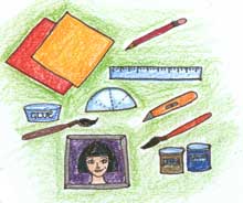 Paints and a paintbrush